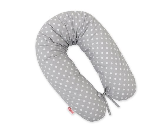 Bawełniana poszewka do poduszki ciążowej Longer - Białe grochy na szarym