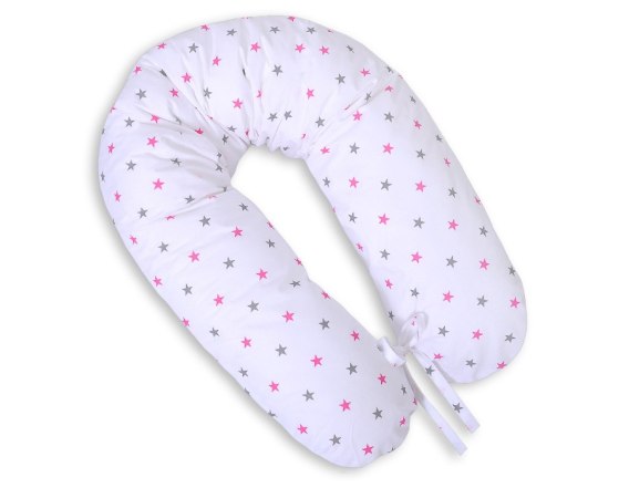 Bawełniana poszewka do poduszki ciążowej Longer - Gwiazdki szaro-różowe