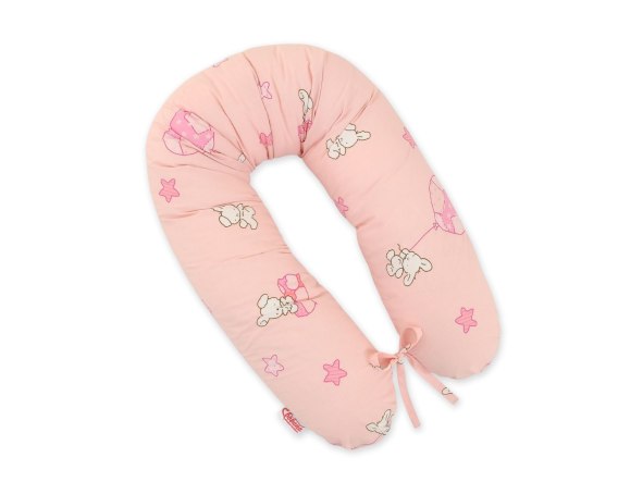 Bawełniana poszewka do poduszki ciążowej Longer - Miś z balonikiem różowy