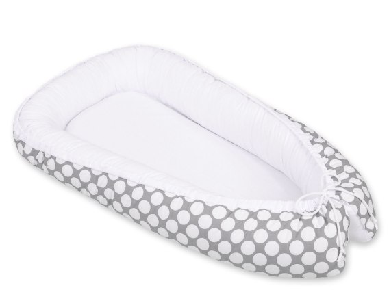 Dwustronny kokon niemowlęcy otulacz – Gniazdko dla niemowląt z certyfikatem Oeko-Tex - kółeczka szare/biały