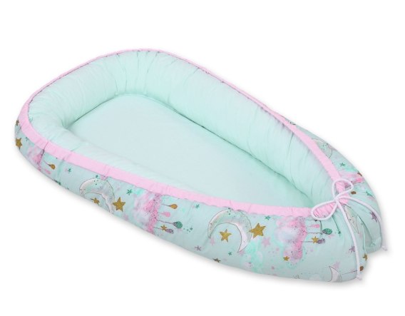 Dwustronny kokon niemowlęcy otulacz – Gniazdko dla niemowląt z certyfikatem Oeko-Tex - księżyce miętowe