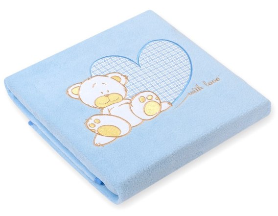 Kocyk polarowy dla niemowląt - Milo- Miś z sercem niebieski