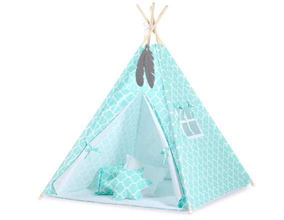 Namiot Tipi dla dzieci+ zawieszki pióra - Maroko miętowe