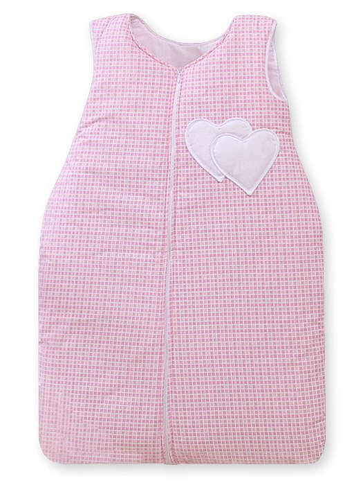 Bawełniany śpiworek dla niemowląt 6–12 miesięcy | TOG 2.5 | Całoroczny, ocieplany – różowy wzór serduszka i kratka